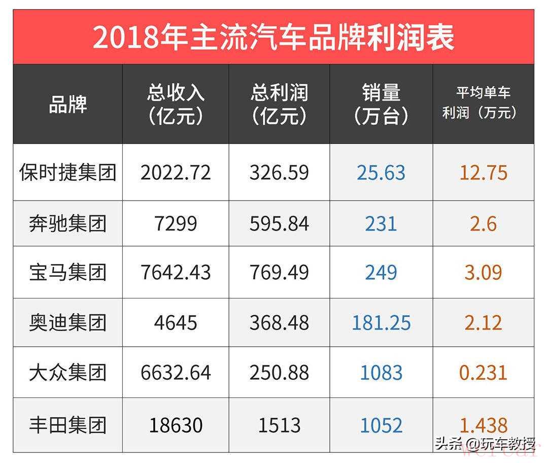 将发动机的成本控制住了,那么利润空间就会变大。根据一份2018年主流汽车品牌销量与收入的报表比例来看,BBA的单车利润控制在2-3万元左右。虽然这个数据的计算只是简单的用利润除以销量,没有将其它很多因素列进来,但还是具备一定的参考价值。豪华品牌卖一台车挣好几万元,也再正常不过。