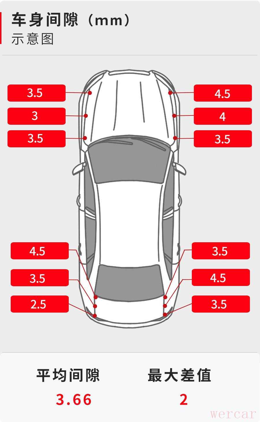 另外,在车身的做工用料方面,新迈腾也保持了大众车系一贯精良的水准。经过测量,新迈腾的车身平均间隙为了3.66mm,间隙最大差值2 mm,属于优秀水平,说明车身各钣金件缝隙较小,制造工艺优良。