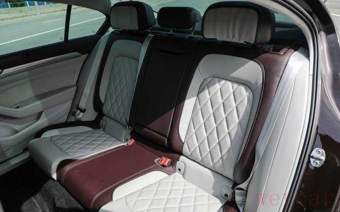 乘坐空间方面,新迈腾依然是标杆的表现,实测后排的纵向空间达到了900mm,身高176cm的成年人坐进迈腾的后排实际体感还算宽敞,但是由于后排两侧车窗开口较小,所以乘坐起来会有一定压抑感,但是好在实际乘坐空间不差。空间表现与同级别车型相比处于上游水平,一家人的出行或者商务需求都可以满足。