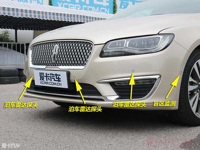 新款林肯MKZ车头拥有四个泊车雷达探头外加两个盲区监测探头。