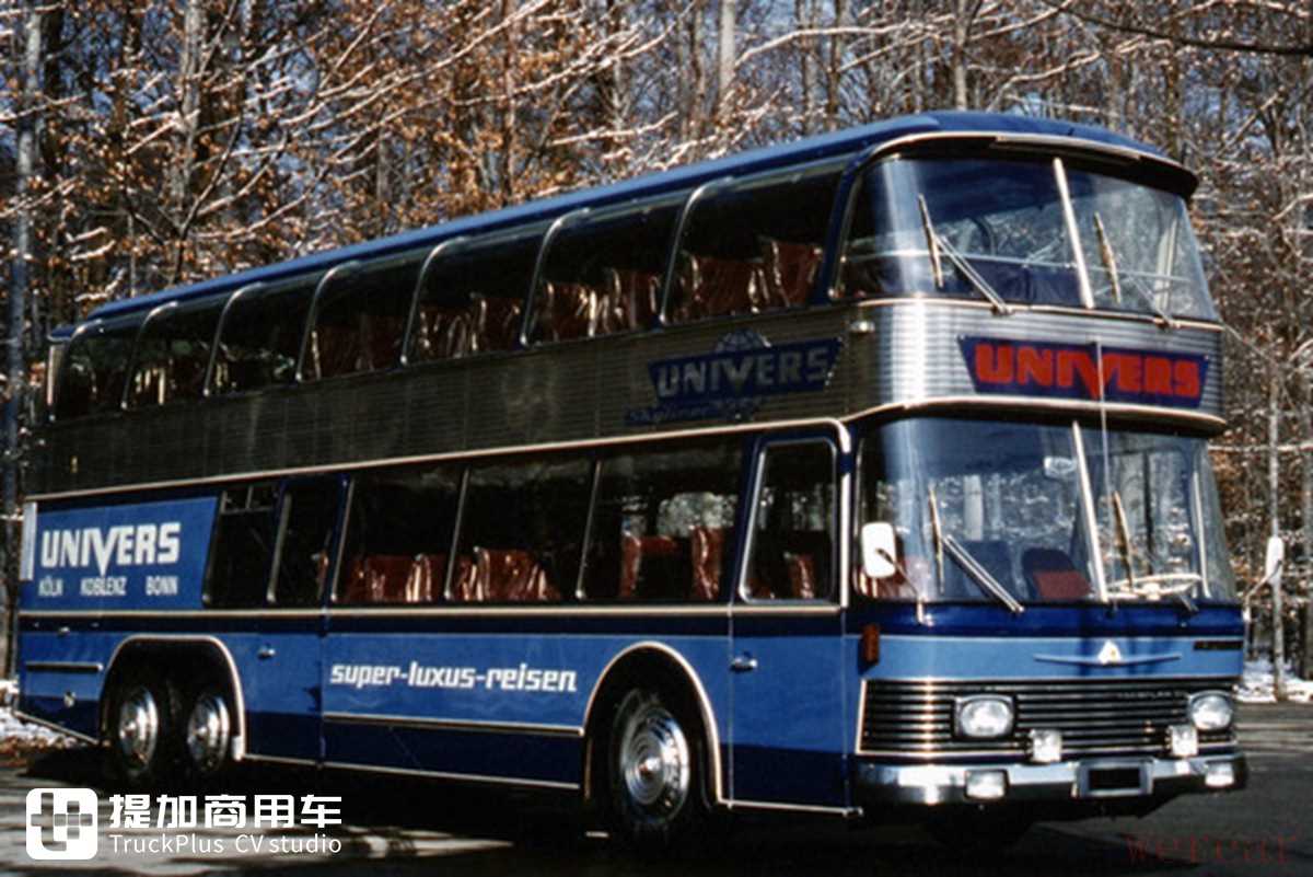 1967年IAA(汉诺威国际商用车展)上,NEOPLAN推出的Skyliner NH22车型取代了老款Do-Lux NB 20L车型(如图),这预示着skyliner系列的正式诞生。凭借其高载客量、卓越的经济性和灵活性,新车型一经亮相,就给全世界的客户及乘客留下了深刻的印象。