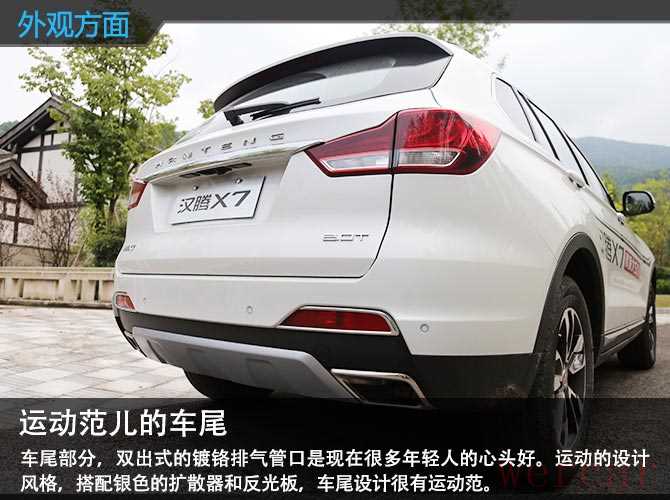 汉腾整体的外观看上去十分简约,没有任何夸张设计,适当的镀铬装饰能够给这辆车起到一定的点睛之笔的作用。平凡,这个词用在汉腾X7上最合适不过。