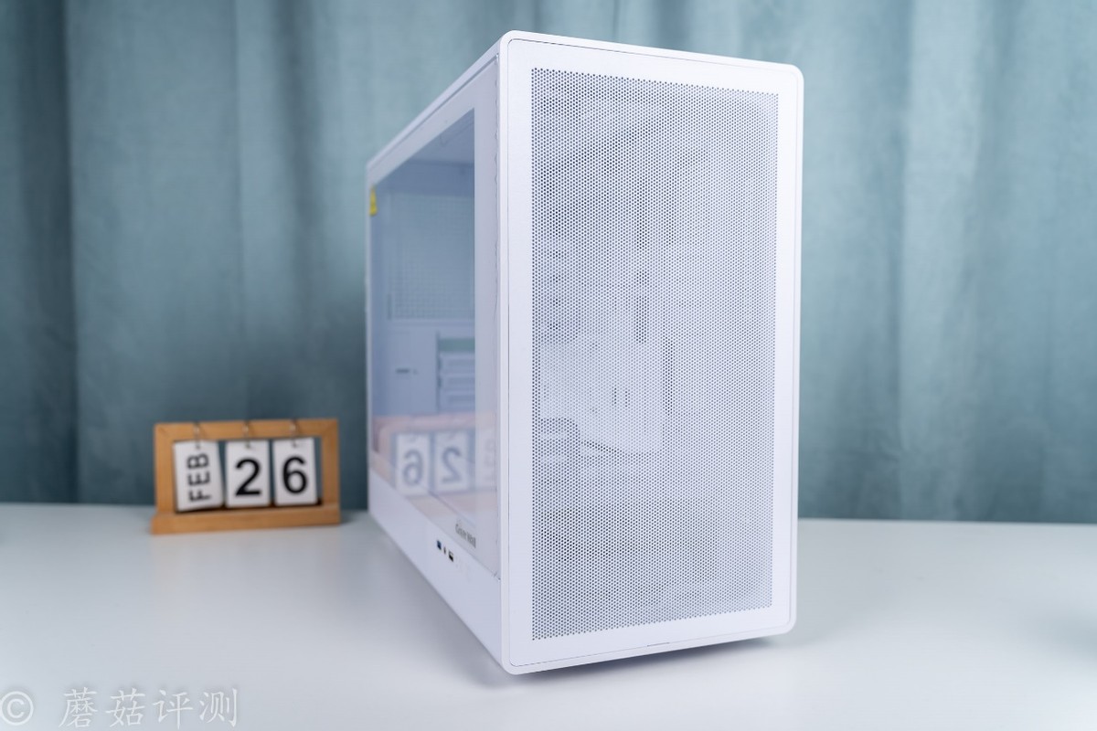 ▼机箱侧面是硕大的侧透玻璃,白透的,透光效果很好。