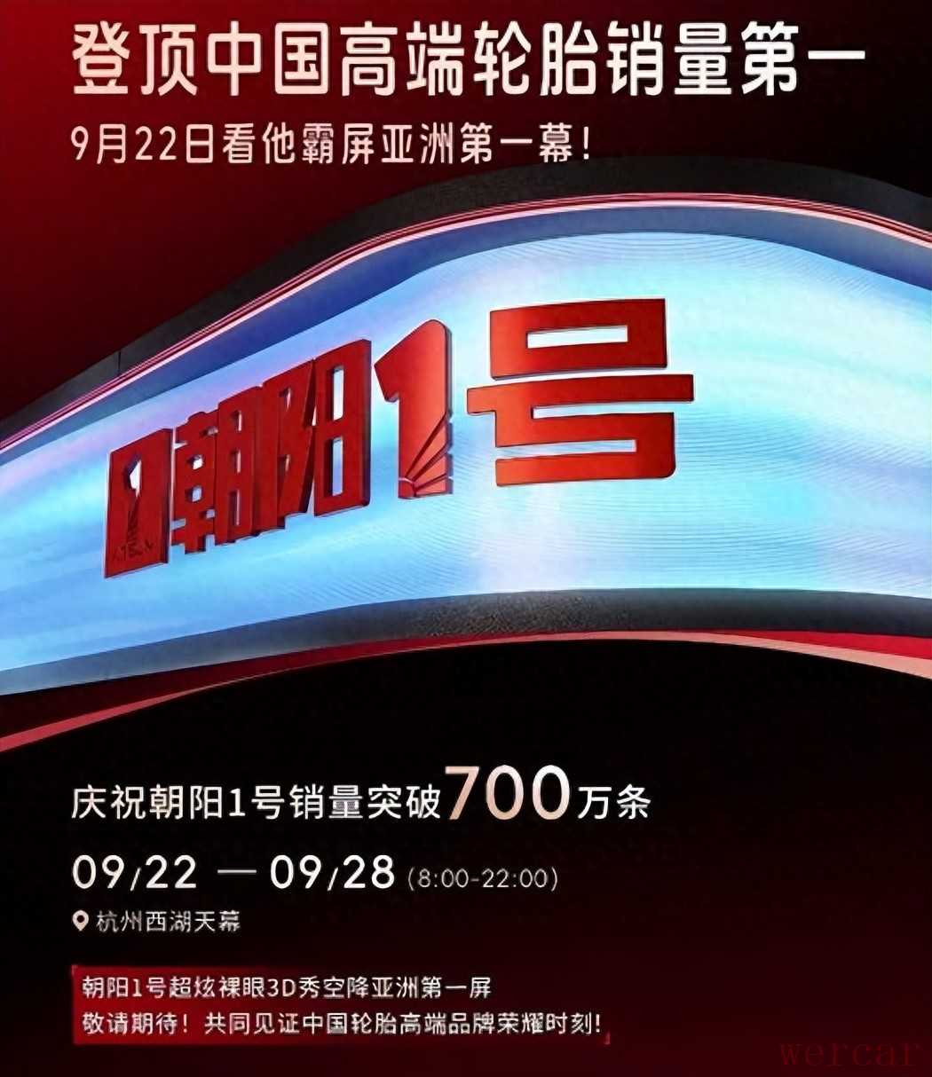 9月22日至28日,亚洲第一屏——杭州西湖天幕上,朝阳1号轮胎的华丽影像将划破夜空,庆祝其销量突破700万条,稳居中国轮胎品牌高端系列销量第一。这一荣耀时刻,不仅标志着朝阳1号系列牡在高端市场的胜利,更向世界宣告:短短数年,国产轮胎已经站稳中高端市场。从被国际大牌垄断的高端市场突围,朝阳1号的封神之路,改写了国产轮胎只能困守低端市场的命运,成为中国制造业升级的经典案例。