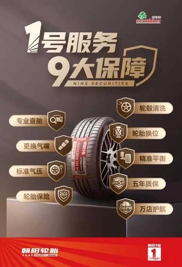 服务革新:1号服务与9大保障体系高端产品必须配套高端服务。朝阳1号推出了行业领先的“1号服务”和“9大保障”体系,重新定义了轮胎行业的服务标准。“1号服务” 包括专业查胎、标准胎压、更换气嘴等增值服务,让消费者感受到尊享体验。“9大保障” 则涵盖了轮胎保险、五年质保、万店守护等多个方面,彻底解决了消费者购买轮胎的后顾之忧。这种服务模式的创新,颠覆了传统轮胎行业“一卖了之”的销售模式,建立了与消费者的长期连接,大大增强了品牌黏性和口碑传播。