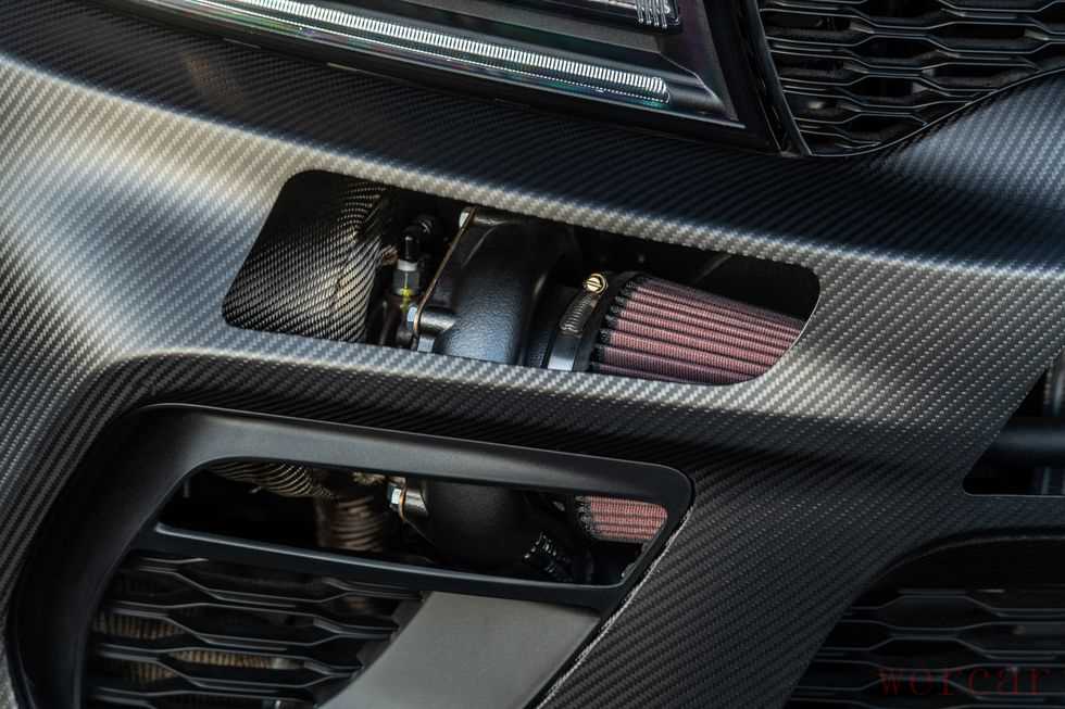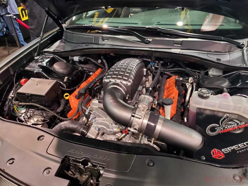最令人印象深刻的部分还是引擎盖下的东西,为SpeedKore Charger提供动力的发动机是一款改进型的恶魔发动机,它将增压器换成一个大型定制进气增压室,以承受26磅的增压,增压压力由位于前保险杠后面的两个Precision 6466滚珠式钢坯涡轮增压器提供,这种蛮力上的排气装置是独一无二的:三英寸的Magnaflow竞赛系列排气装置从后部引出,带来令人垂涎的休闲驾驶。