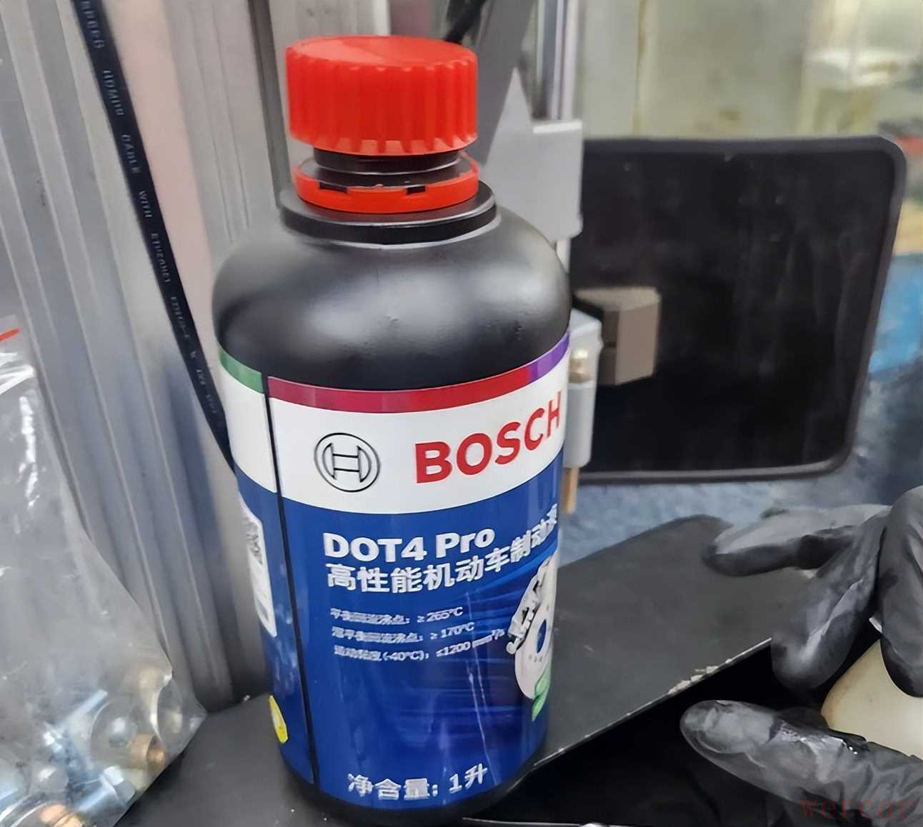 换油时必须用专业设备排空管路空气(如气压式换油机),手工排空气易残留气泡,导致刹车脚感偏软。