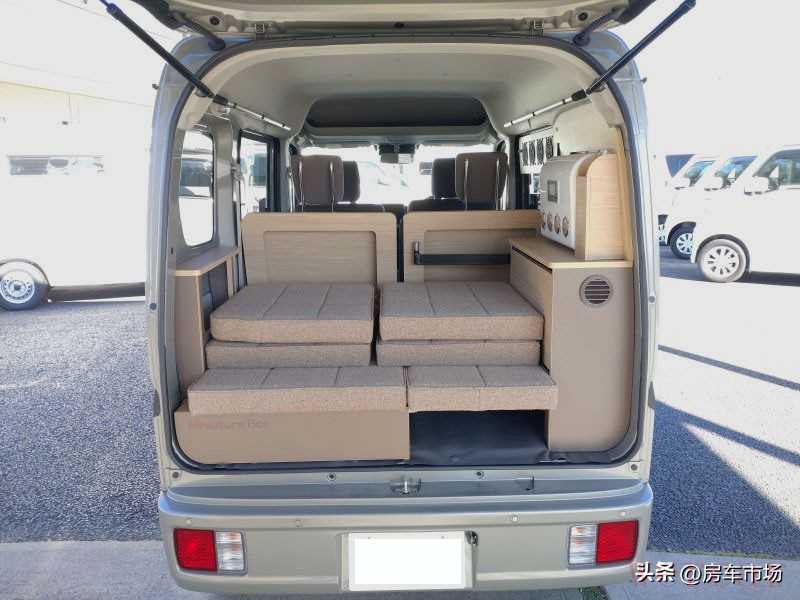 这台小型铃木面包露营车,排量小经济省油,内部座椅可调整,布局多变,拼床可睡两人,有基本的水电,适合1~2人短途旅行使用。