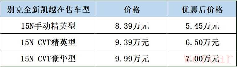目前别克全新凯越在售车型如下: