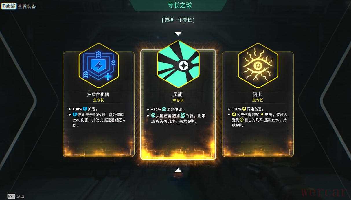 在完成一个区域之后,可以获得随机的成长奖励,那可以在通往下一个区域的入口处,通过与球体互动来获得成长。玩家可以在三项随机出现的成长中选择其中之一,包含攻击力、射速等直接的属性提升,也包含一些专长,赋予更多的构筑类型。玩家可以通过选择不同的成长方向培养自己的流派,寻找更适合自己的流派,在接下来的战斗中不断获得更强大的成长。