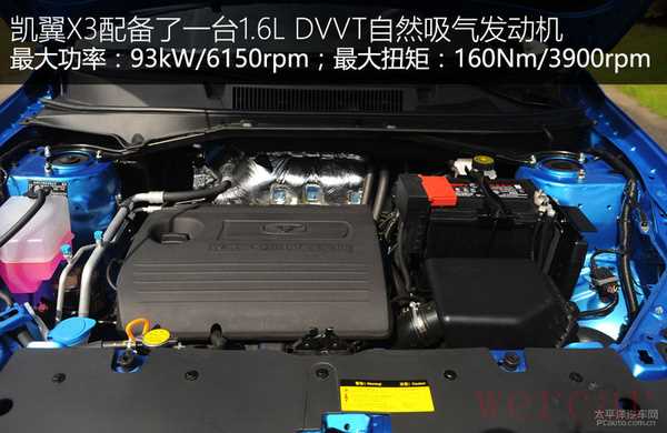 凯翼X3只配备了1.6L DVVT自然吸气发动机,搭载5速手动和7CVT变速箱,动力配置上符合这个价位车型的水平。另外,凯翼X3未来还会推出1.2T版本,值得期待。这台1.6L发动机对于凯翼X3来说,算是个很合理的搭配,在燃油经济性和动力性上能够做到均衡。