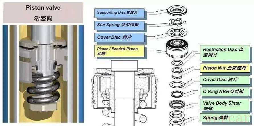 可能有些朋友总能听到调校这个词,但对于调校具体指的啥、怎么调就不清楚了?实际上针对避震的调校指的是减震器阀系,如上图所示阀系中包含了很多个阀片,通过增加或减少阀片的个数都能改变油液对阀片组的冲击力度与流向,从而使得避震表现出不同的特性,适合买菜或适合运动;这就是针对避震的调校,当然这个层面不是指在改装店的操作,而是开发之初原厂的设定;这方面日系做中低端车型配套的日立、SHOWA都不如采埃孚旗下的萨克斯!