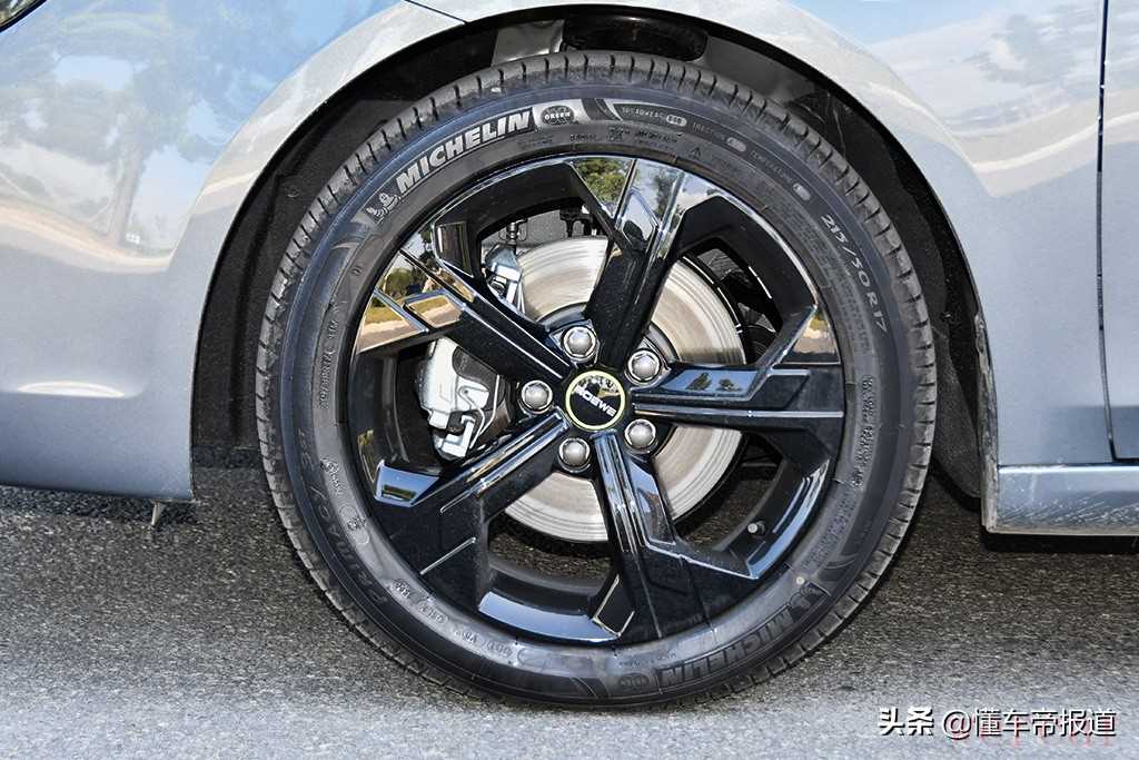 该车配备了17英寸的轮辋,其尺寸对于这个级别的车型来说刚刚好,在视觉效果上很协调。轮胎则选用了米其林的浩悦3st,主打静音和节能效果,实际使用中确实对NVH表现做出了一定的贡献。