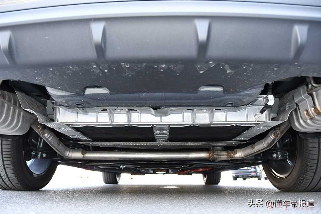 该车的悬架系统采用了前麦弗逊式独立悬架、后扭力梁式非独立悬架,但由于在燃油版车型的基础上增加了三电系统,所以车重也随之增加了195千克,不过这为车辆带来了更加沉稳的形式表现。转向助力会根据行车速度进行调整,而整体力度比较偏向于轻柔的调校,驾驶起来会很轻松。