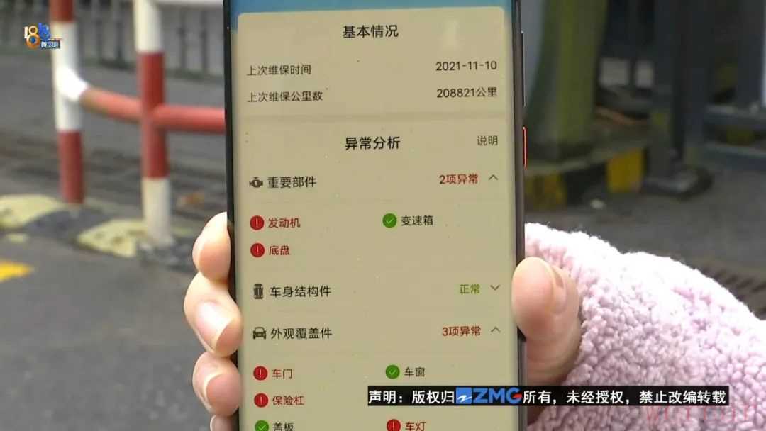 但先生又提供了一份电子版的维修保养报告,说是通过第三方软件查到的,上一次维保时间显示为2021年11月份,上次维保公里数达到了20多万公里;重要部件中的发动机和底盘都有异常情况;
