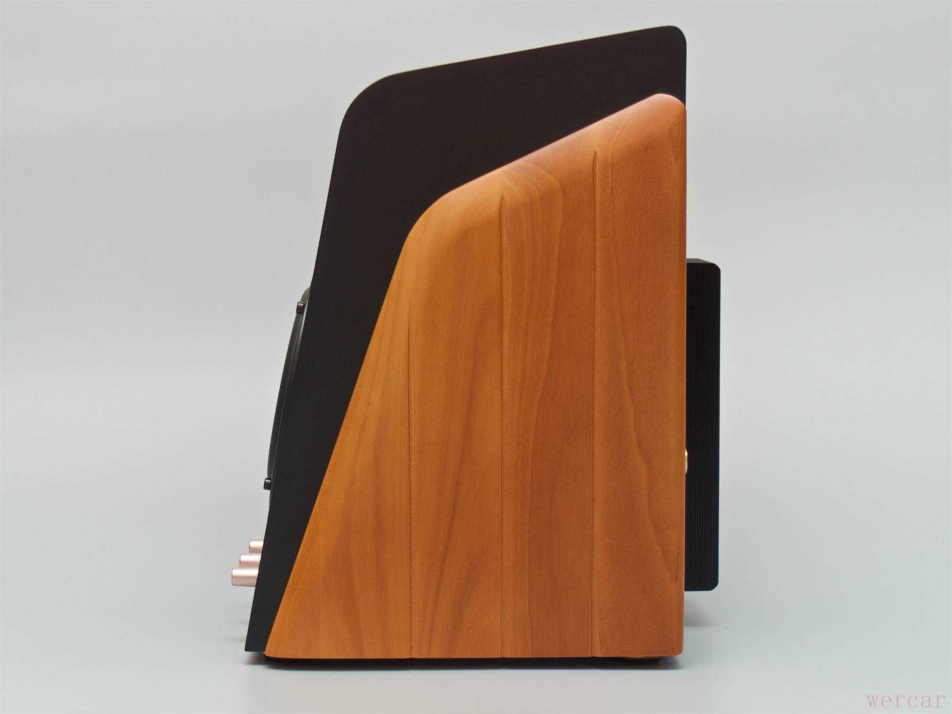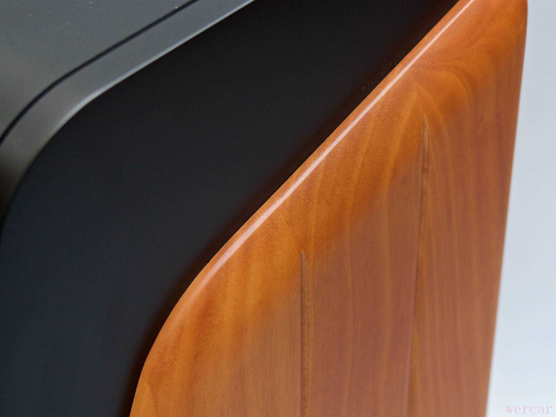 前面也说了,M200MKIII+侧面采用的是原木的侧板,官方介绍使用的是手工配对的桦木原木,并且经过切割、打磨、烘干、喷气、抛光等十多道工序,而且厚度达到12mm,其作用是加强箱体侧面的稳固性,并且吸收箱体的谐振,从而保证在播放大动态音乐时,也不会因为箱体震动而使得声音变得浑浊。