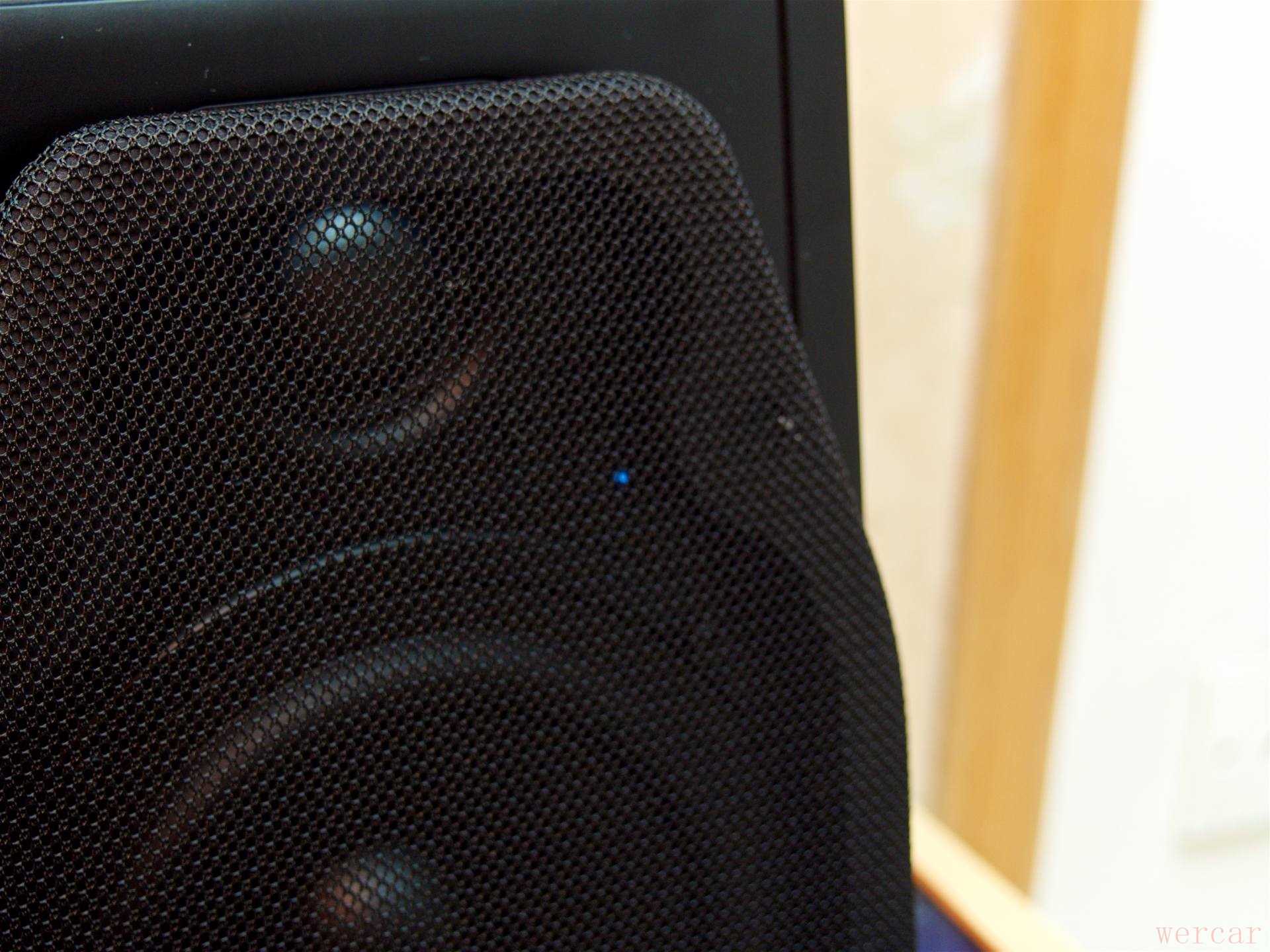 在M200MKIII+右侧主箱的高音单元右下角隐藏了一颗多色的状态指示灯,用以方便用户区分当前音箱的工作状态以及输入信号源。指示灯的亮度并不高,平常不会太碍眼,不过如果参考M300那样直接做成发光LOGO就更好看了。