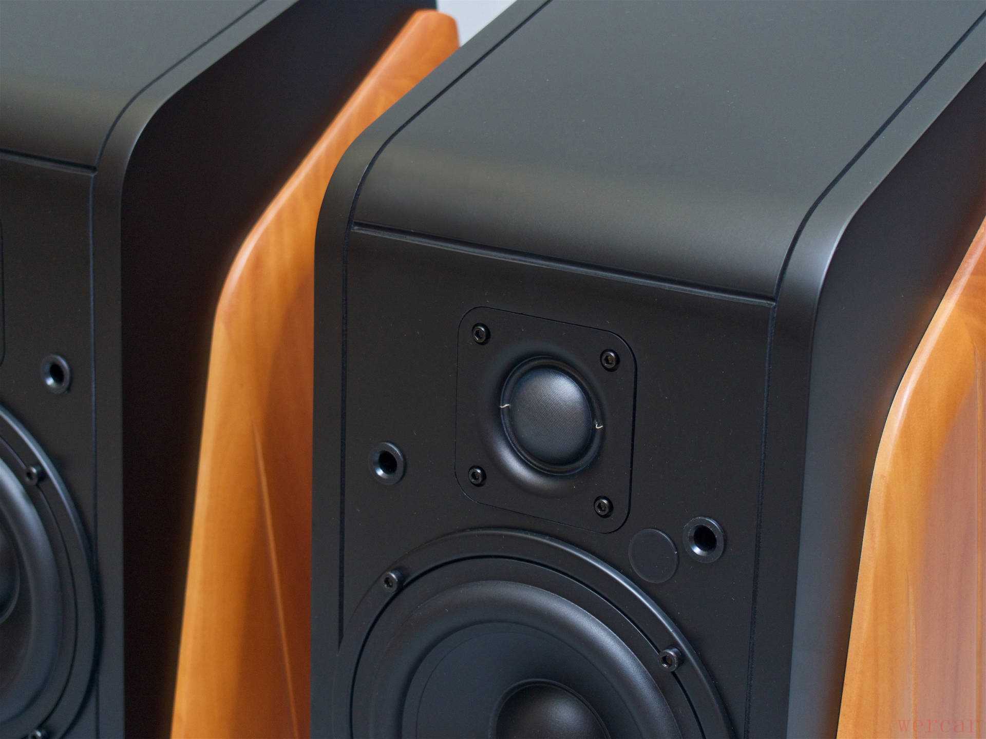 作为惠威的经典,M200MKIII+最早诞生于上世界90年代,期间经历了最少三次的大规模迭代,但如论怎样升级,其倾斜式的前面板,外加黑色箱体的侧面配搭浅色原木材质的侧板,都依旧被保留了下来,使得整体外观既有份量,同时又不会显得刻板保守,可以说在颜值方面相当不错。