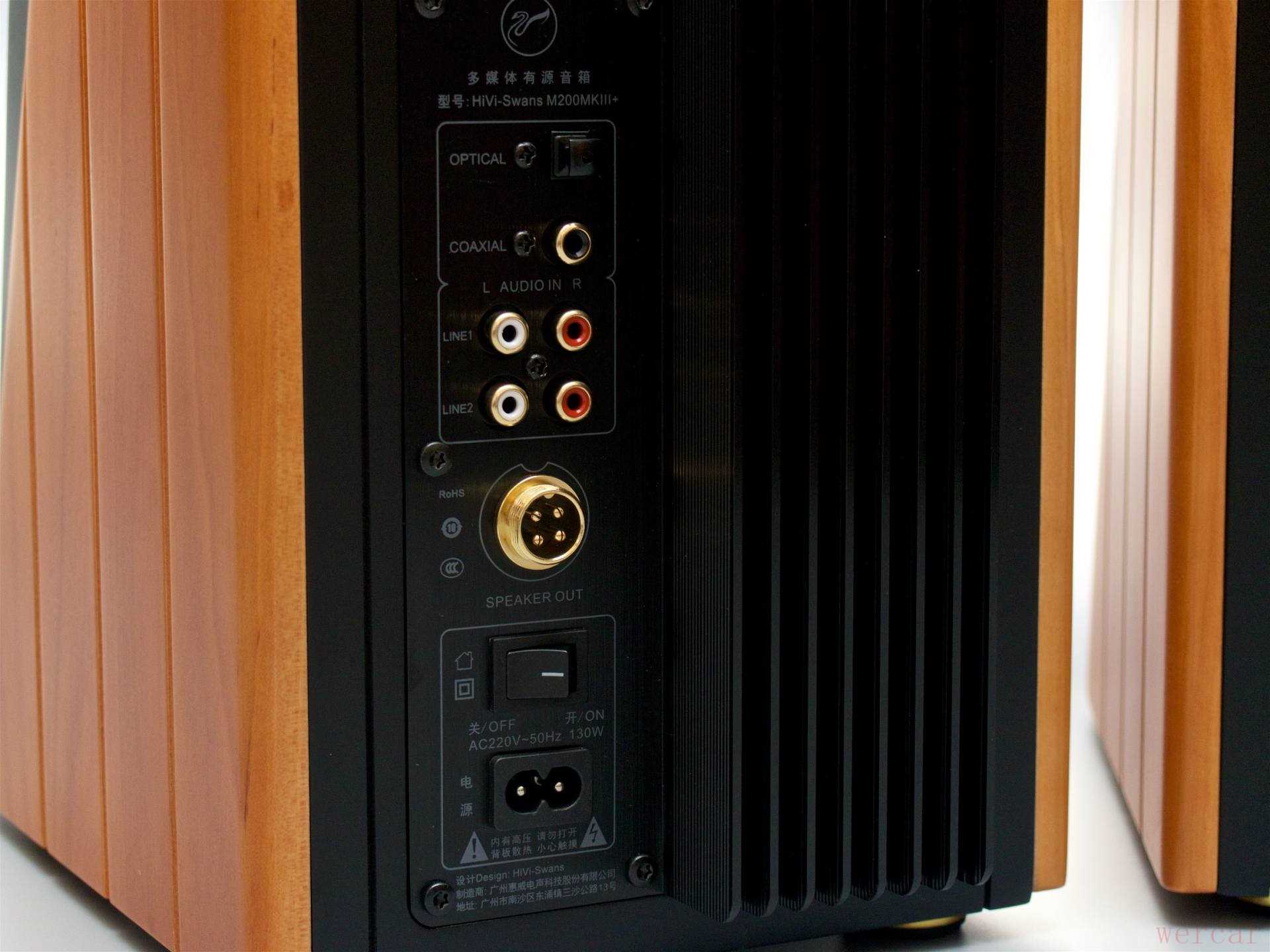 不得不说M200MKIII+的背面接口布局合理,不同用途的线路之间清晰分明,而且不容易相互干扰,由此可见惠威在逐步的优化中将产品做得更加完美了。