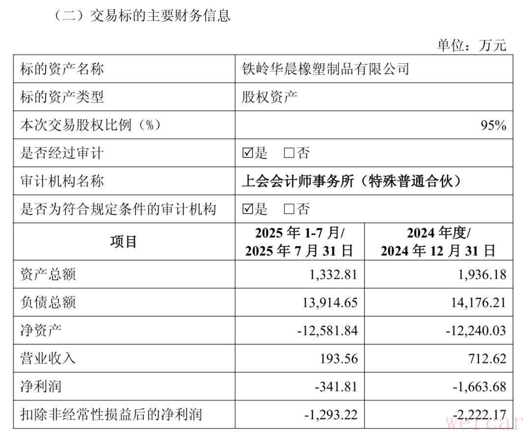 图源:金杯汽车公告围绕在金杯汽车这家孙公司身上的问题越多,越反衬出“1元钱”的昂贵。据金杯汽车披露,持股铁岭华晨橡塑5%股权的铁岭国有资产经营有限责任公司(简称“铁岭国资”)“已放弃优先受让权”。沈萌认为,此举主要为寻求对第三方转让。换言之,铁岭国资原本享有在同等条件下优先购买该部分股权的权利,但选择放弃,表明金杯汽车可将股权按照既定计划转让给其他第三方。再通俗点说,当铁岭华晨橡塑要被卖掉时,二股东表态“你卖你的,我不会跟别人抢”。根据北京金开资产评估有限公司出具的报告显示,鉴于铁岭华晨橡塑已于2024年12月31日起终止全部生产经营活动,其未来生产经营、管理模式及收益均无法预测;且目前国内资本市场上与铁岭华晨橡塑资产规模、盈利水平等类似企业的股权交易案例缺乏或在公开市场上难以取得详细的经营和财务数据,故本次不宜采用收益法和市场法进行评估,最后采用成本法的评估结果作为评估结论。截至评估基准日2025年7月31日,铁岭华晨橡塑纳入评估范围内的总资产账面价值1332.81万元,评估值6178.21万元,增值额4845.4万元,增值率 363.55%;负债账面价值约1.39亿元,评估值约1.39亿元,无增减值变动;所有者权益账面价值-1.26亿元,评估值-7736.44万元,增值额4845.4万元。金杯汽车公告显示,如果继续为铁岭华晨橡塑提供支持,预计未来损失将会增长。金杯汽车此次卖掉孙公司断臂求生之举,究竟多大程度改善其业绩,在沈萌看来,金杯汽车的问题出在该公司经营管理思维落后、技术与产品缺少创新基础,无法形成有效的竞争优势。2024年7月,金晨汽车与沈阳实发汽车配件有限公司(简称“沈阳实发”)等签订投资协议书,金晨汽车向实发汽车投资4185万元,持有其51%股权。沈阳实发是宝马二级塑料件供应商,金杯汽车认为,此举利于扩大公司收入规模,稳固自身产业链。投资后,沈阳实发成为其控股孙公司。沈萌认为,金杯汽车加强与最大客户华晨宝马的合作,对业绩提升帮助有限,主要是为了稳定业绩基础。03