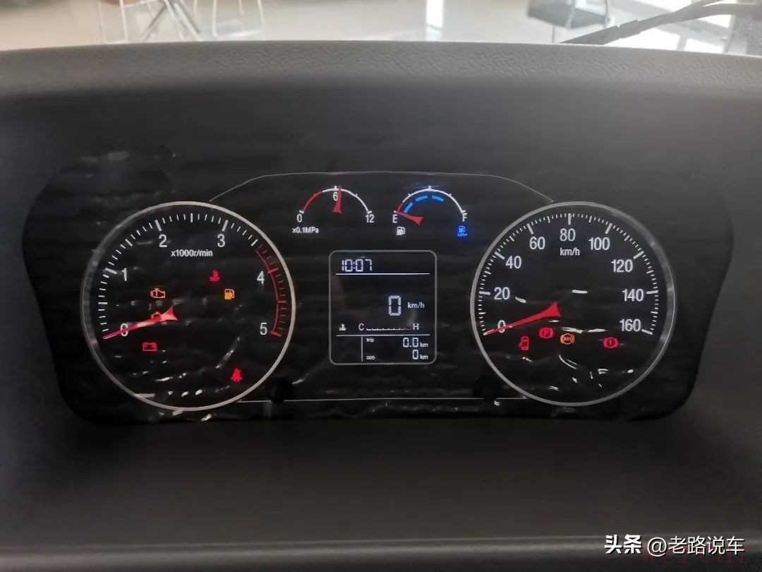 传统指针仪表盘可靠实用,内部信息一目了然,左侧为转速表,右侧为车速表,中间为压力表、油量表以及一块显示各项细节信息的屏幕。