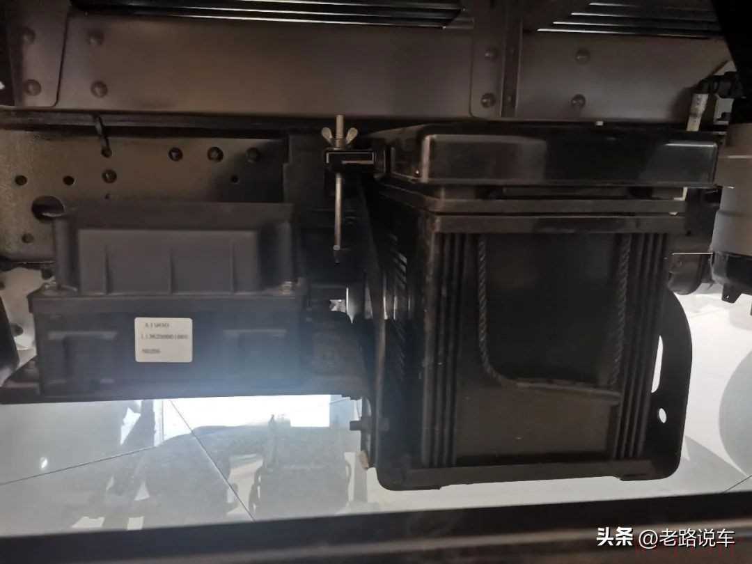 底盘左侧安装了车载蓄电池、柴油滤清器等部件