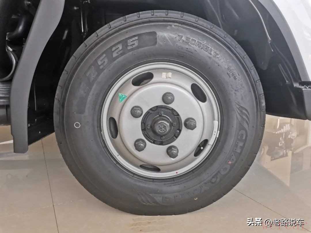 车辆后桥来自青特,主减速比4.33,也可选4.875的速比,让车辆的起步更有劲。全车采用轻量化板簧悬架,后桥匹配7.00R16LT规格的佳通佳安低滚阻轮胎,进一步促进车辆降低油耗水平。
