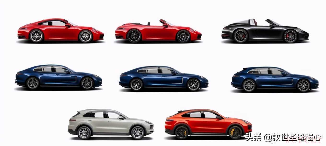 好了说了这么多,我们还是来看看车型吧。保时捷车型命名混乱主要还是因为同一个车型提供了很多车身样式,再加上动力,四驱等等排列组合,会产生N多的组合方案,但是其基础型号,目前在售的有以上6款。2款2门,2款4门,2款suv。