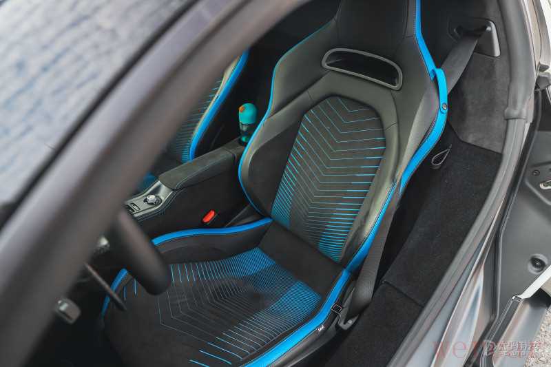 一体式运动座椅是跑车必备,这套座椅并非完全竞技取向,还有较好的舒适性,并且采用真皮与翻毛皮的组合,个性之处是中间渐变的蓝色拼接线条