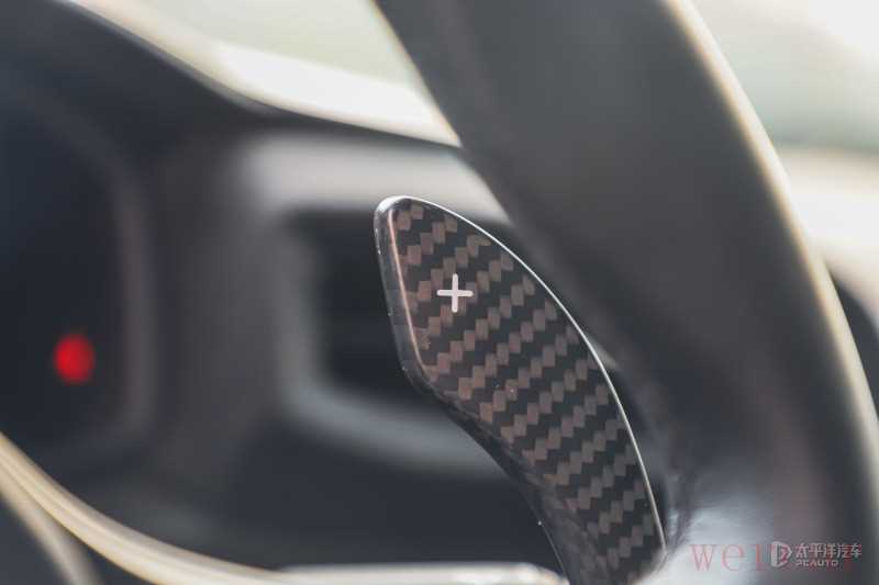 启动键也被放置到了方向盘上,并且还有硕大的换挡拨片为金属材质,手感不错。