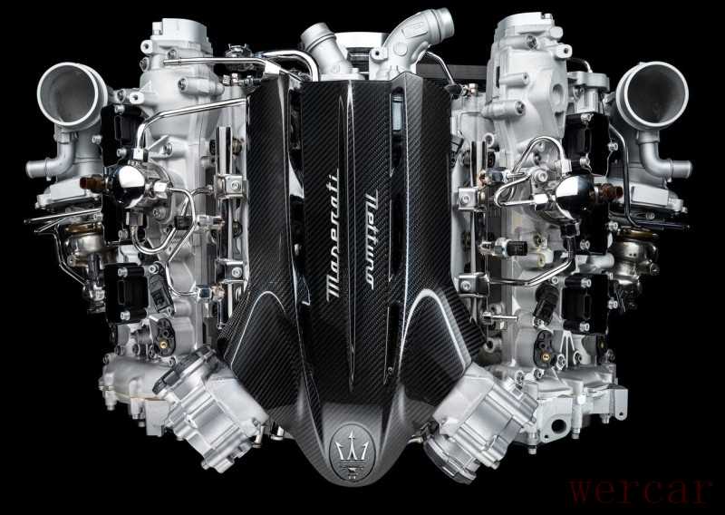 发动机部分,玛莎拉蒂MC20采用了一台3.0T V6发动机,最大马力630匹,峰值扭矩730牛·米,发动机引入了来自F1的双火花塞预燃烧室技术,并且整车采用中置后驱的布局。