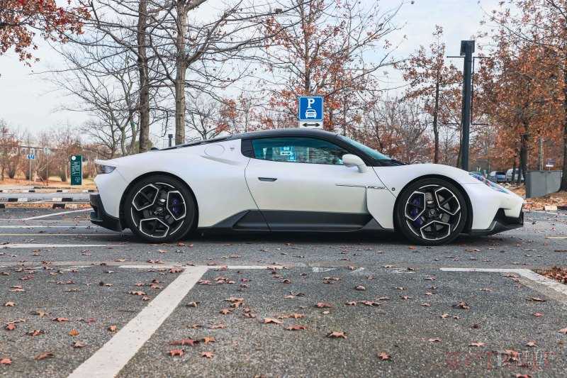 新车侧面线条充满了张力,4669mm的车长和2700mm的轴距让这款车看上去比例非常的合适。门前端配备了“MC20”的专属铭牌。