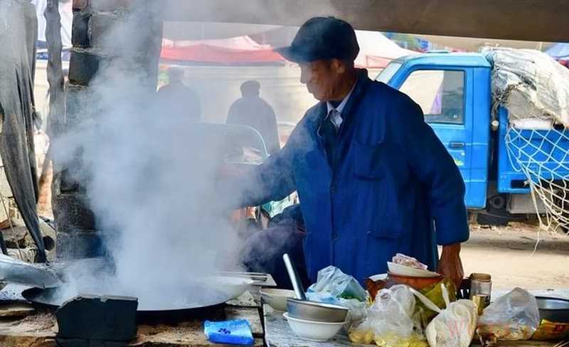 第二天一早去市场吃早饭,小摊上卖米皮和凉粉,三块钱一碗,老板娘手脚麻利地舀汤,旁边有小哥卖手抓羊肉,大锅羊肉切得厚厚的,我买了二十块,老板用手一抓,蘸着辣椒粉,肉香味在嘴里打转,这肉有嚼劲,吃完一碗米皮再来点羊肉,整个人都精神了。