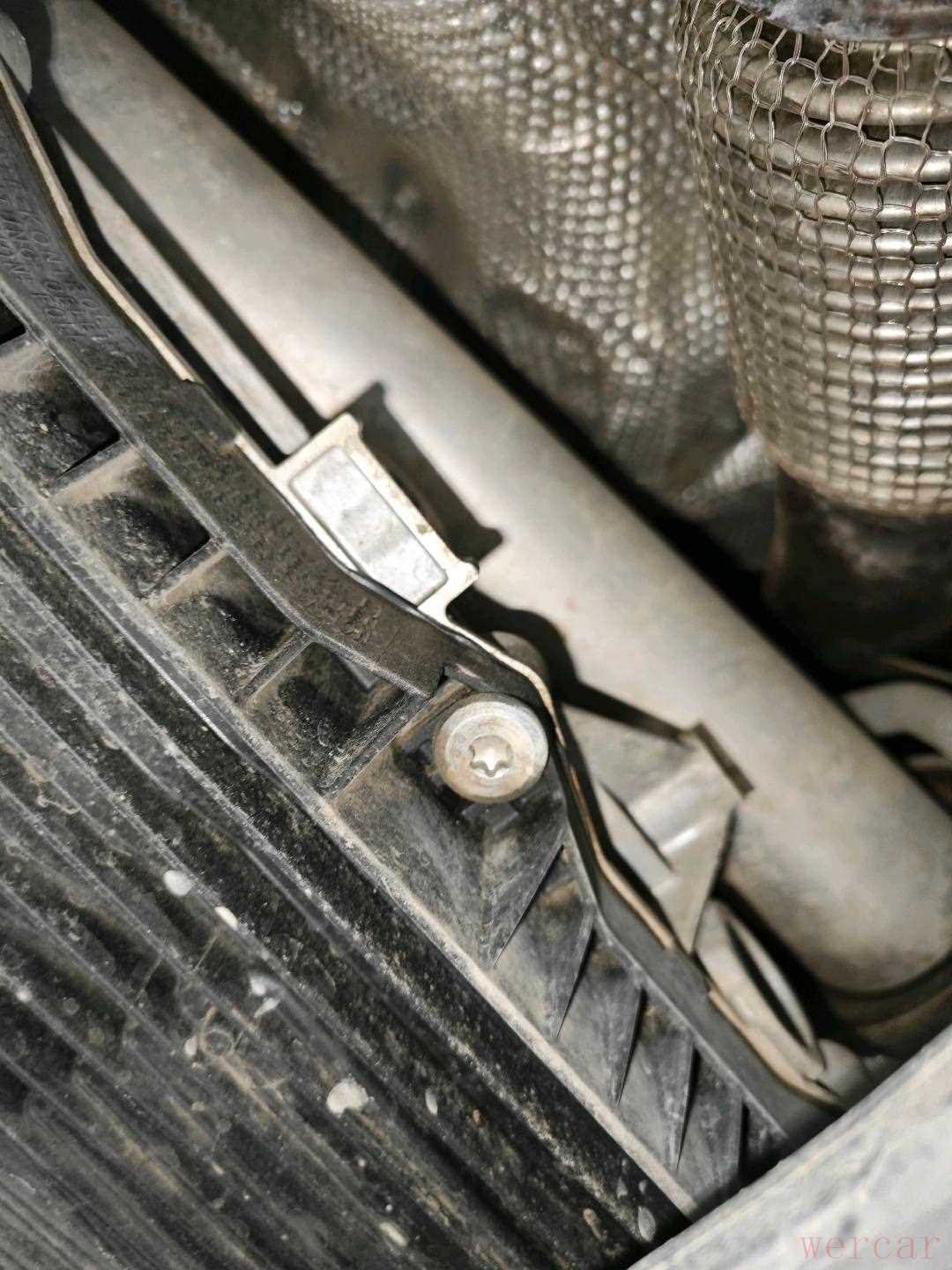 只是更换外观覆盖件还好,就怕内部结构也伤到,那性质就不一样了,如果内部结构没问题,只换个大灯那都不影响。看水箱框架,最靠近前面的框架,情况不错,固定螺丝没有拆卸,也没有变形。