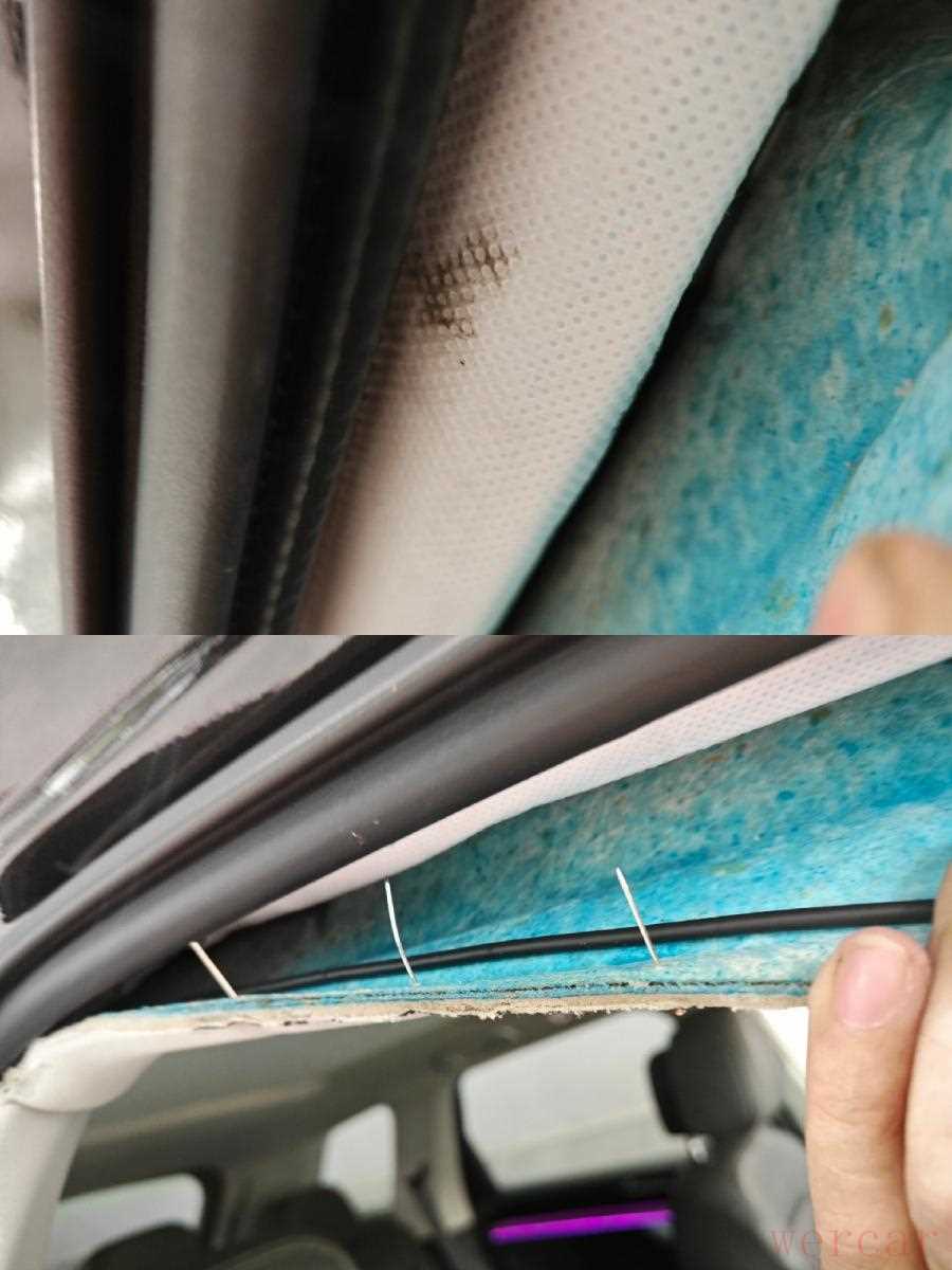 内饰左侧气帘更换,这个没啥问题,顶棚也是后面重新拿针固定的,别说,固定的还挺牢。