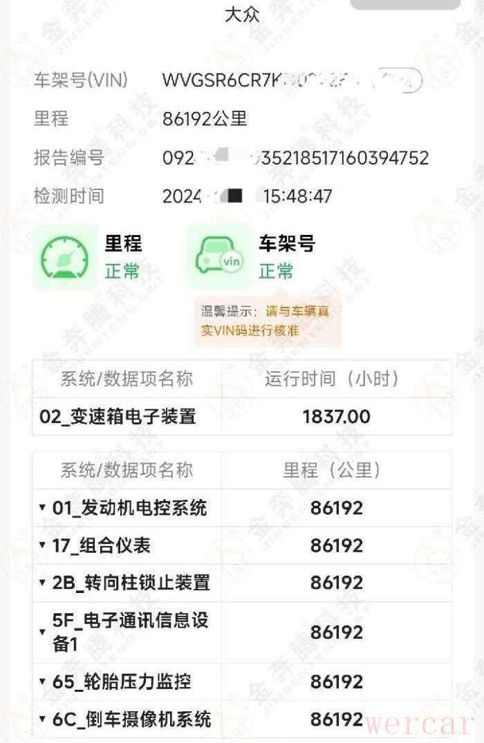 读取电脑内的公里数,显示为86192公里,和仪表盘相差不大,结合整车磨损来看,排除了调表的嫌疑。