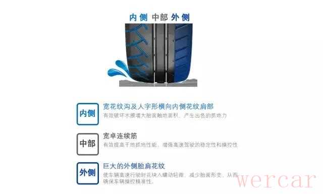 它采用了新开发的高抓地力的化合物,采用了5间距花纹设计,而获得了十分不错的耐用性和操控性。具有稳定的刚性可以在漂移中实现可靠的操作以及防止侧翻。同时具有较高的排水性能,优异的湿地性能。是雨天行车的较好选择。