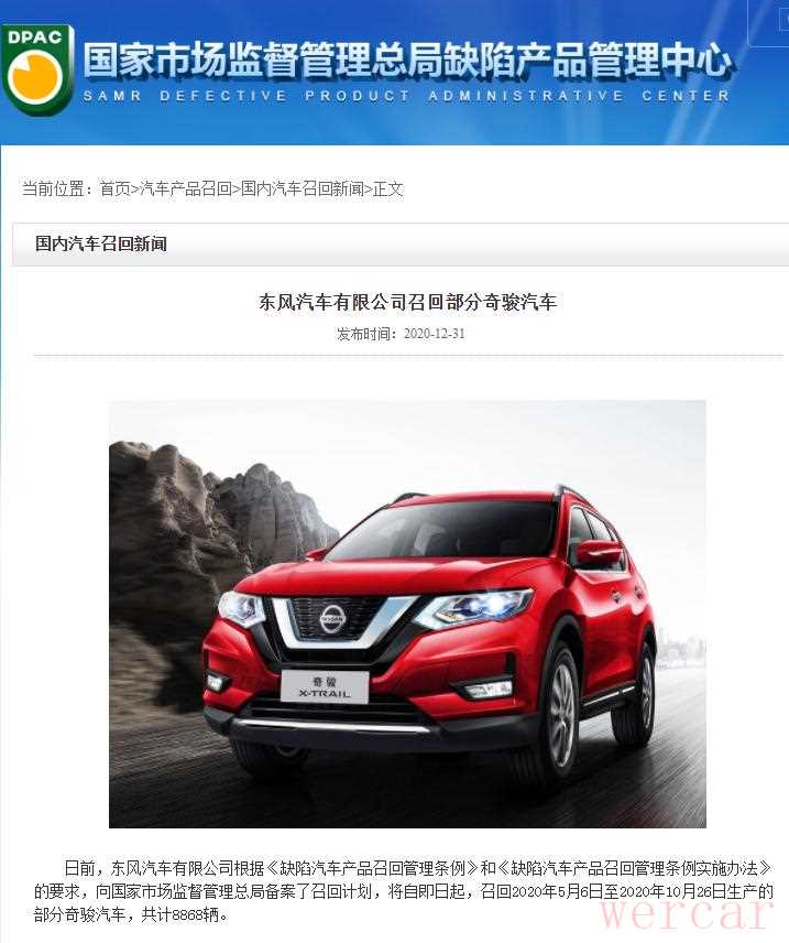 此外,记者注意到,2020年12月31日,东风日产奇骏还曾因质量问题召回了8868辆故障车辆。召回原因具体为:“车辆由于线束未安装在指定位置,导致前保险杠上的左侧雾灯在前保险杠安装过程中,灯具尾端与后面的谐振腔表面产生干涉,造成灯泡产生旋转力脱出。当前雾灯点亮使用时,脱出的灯泡炽烤周边塑胶件,塑胶件烧熔后有起火的风险,存在安全隐患。”