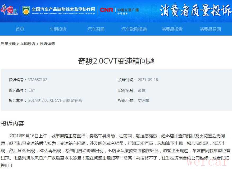 东风日产奇骏变速器故障投诉频发,新车上市疑销量造假问题尚待解决