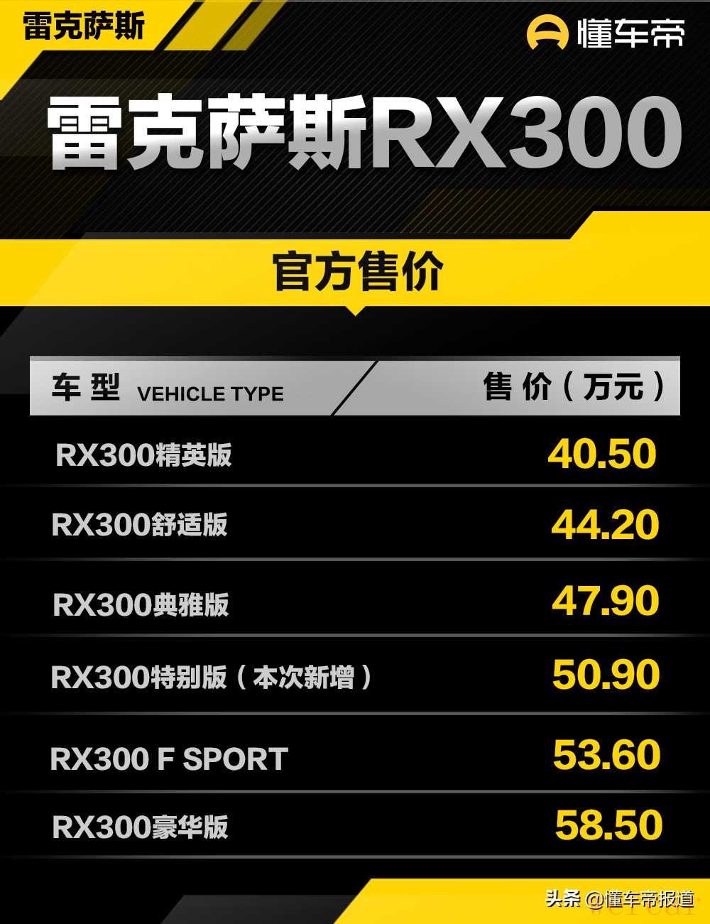 "新车速递:雷克萨斯RX300新增特别版上市,售价50.90万元,搭载2.0T动力"