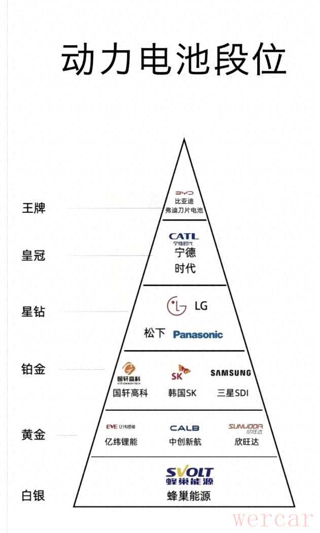 一张“动力电池段位金字塔”图在网上火了,把各家电池厂商按“王牌、皇冠、星钻”分级,比亚迪的磷酸铁锂电池直接登顶“王牌”,这让不少人好奇:磷酸铁锂不是“低成本”的代名词吗?咋就成了金字塔尖的存在?