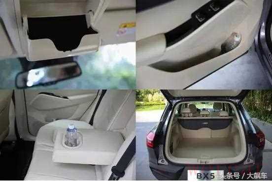 BX5的内饰像是大家司空见惯的类型,挑不出毛病也看不到亮点,唯一颜色搭配是亮点这台车的蓝米色相间是我最喜欢的配色,除此之外还有纯黑内饰和棕黑内饰可供选择。
