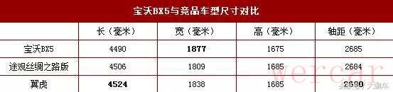 从数据上可以看出,宝沃BX5与他的竞品车型完全属于同一级别,但是他没有打尺寸之战,除了宽度几乎都没什么优势,这很正常,浮躁的汽车市场不能一味的以大取胜,而他为什么比别人宽?这值得说说。