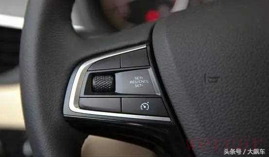 方向盘左侧按键是定速巡航的功能按键,空缺出来的三个按钮位置或许是给日后增添的自适应巡航等功能准备的。