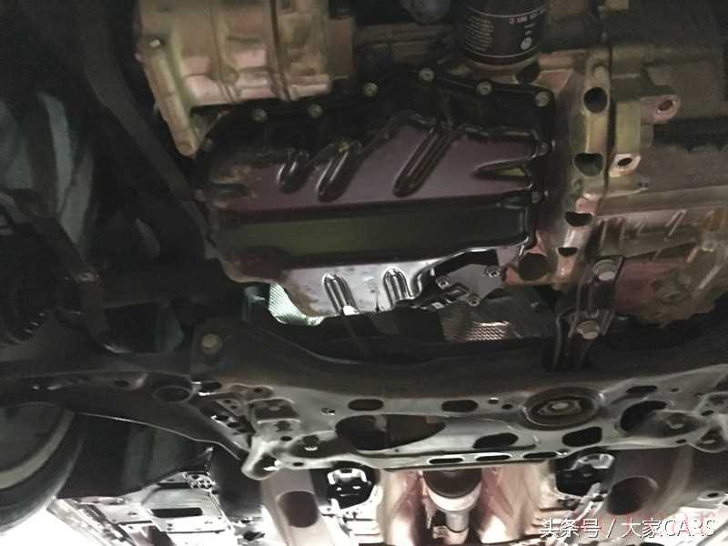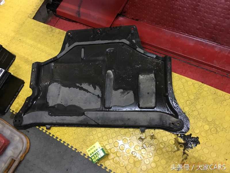 拆卸下来后,仔细观察下护板并观察发动机油底壳,未发现漏油痕迹。