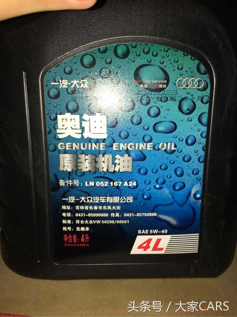 在此给大家介绍一下上一箱机油的情况。上一箱为原厂奥迪专用5w40机油,机滤为原厂配件,换油地点为本地一家4s店