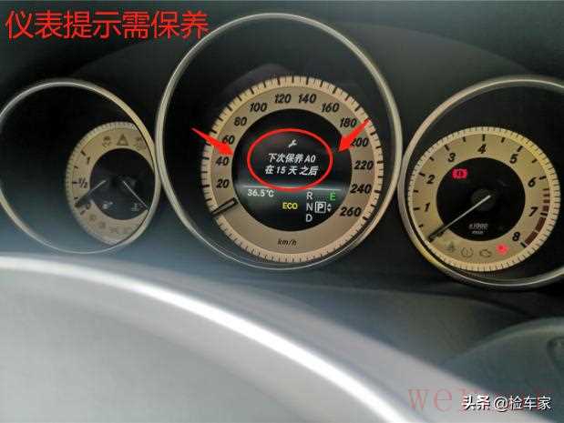 接着我把车辆通电进行接下来的检测,发现仪表提示“下次保养A0在15天之后”,看来这辆车买回去以后马上就需要花钱进行保养了。同时,这也再次佐证我之前在检测机舱的时候,发现这辆车的机油存在比较明显的脏污现象。