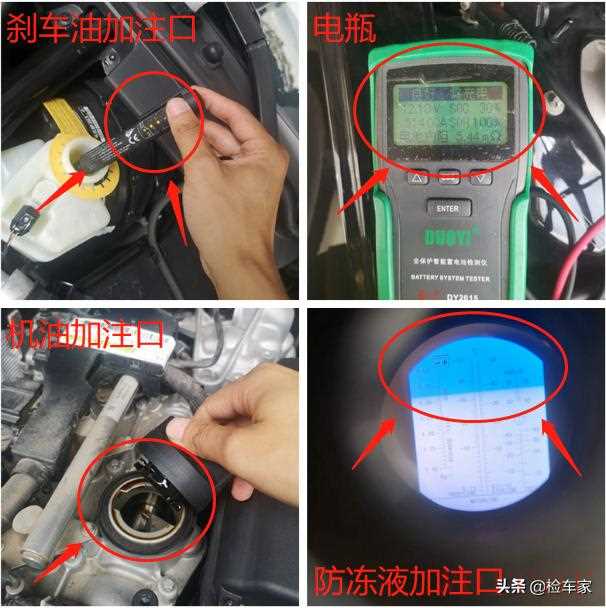 下面进行全车油液和电瓶检测,发现刹车油、机油存在比较明显的变质现象,建议后期及时更换,以免影响行车安全和车辆性能。电瓶方面存在轻微亏电现象,建议后期及时留意启动时的状态,如发生启动时间加长或启动疲软情况则需要及时进行更换,以免影响车主行程。
