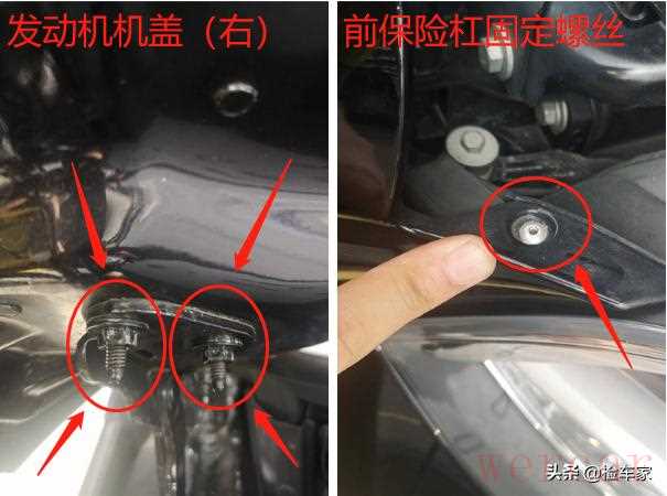 细节方面,发现前机盖存在拆装现象,前保险杠有拆装更换痕迹,铆钉明显是后期更换的,看来前面是有过事故了,但是事故是否严重,我们还需要进一步的检测才能知道。