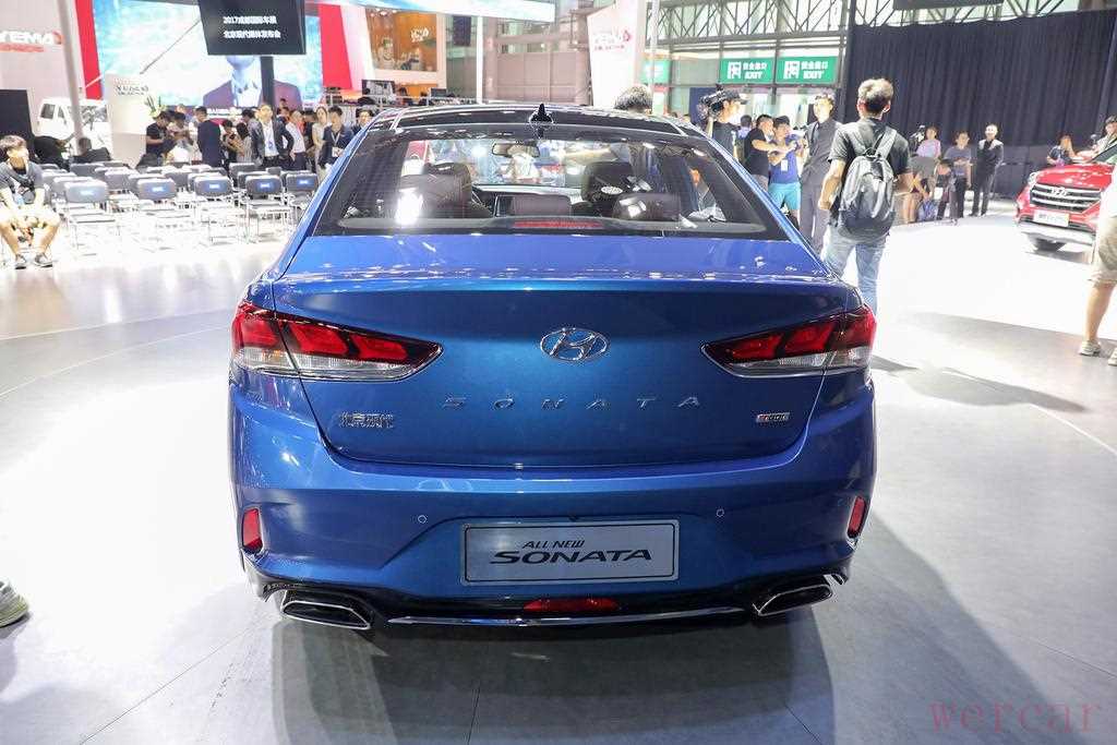 车尾造型与老款相比也有着很大的改变,设计风格要更简洁一些,但层次感上要稍微逊色一些,车尾的整体效果比较明显,其中后备箱开启的按键设计得比较隐蔽,对于一些不太熟悉这款车的朋友,很少能猜到。此外在后包围下部的黑色高亮材质以及双边共两出排气管,也凸显出了不错的运动感受,如果是喜欢这种运动风格的话,索纳塔九的设计并不会令人失望。